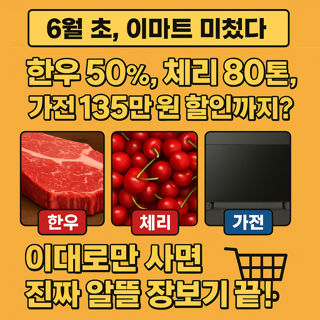 6/7(토) | 한우 등심 50% 할인, 삼성/LG 가전 프로모션 |